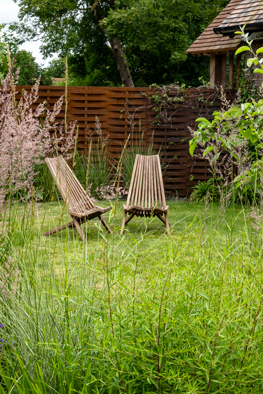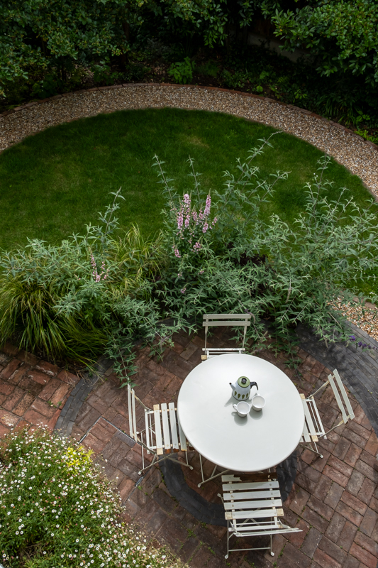 Restoration to an original Arts and Crafts building called for a sympathetic design for the garden. Using reclaimed materials combined with industrial steel creates a modern twist. Planting is loose and ethereal creating hidden places to sit and contemplate.